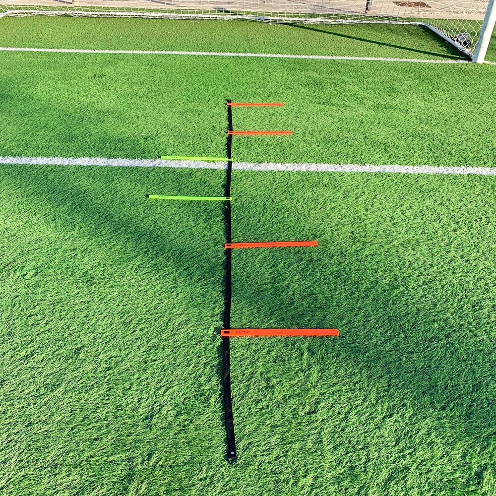 Стълбата за координация на вратарите е специално проектирана да подобри гъвкавостта на краката и координационните умения на вратарите. Изработено е от издръжлива найлонова тъкан за колани и е с дължина 3,5 метра, включваща 6 регулируеми пластмасови стъпала с дължина 50 см всяка. Стълбата е широко използвана за практикуване на техники в една и две стъпки. Предлага се с брандирана чанта за удобно транспортиране. Тази стълба за координация на вратарите е основен инструмент за подобряване на представянето ви на терена за начинаещи или опитни вратари.